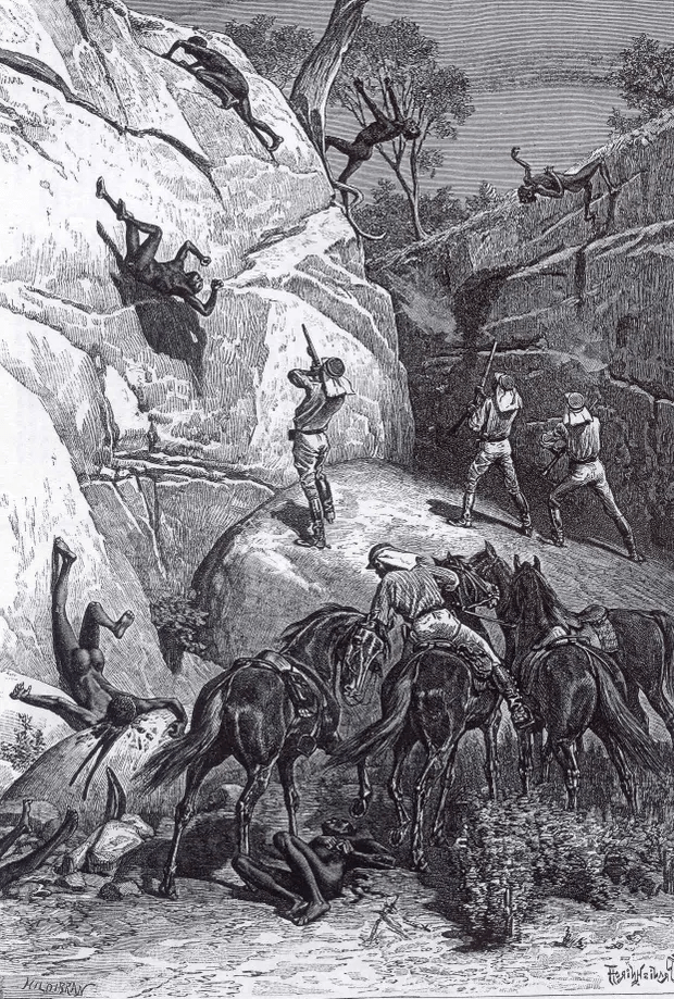 White Settlers hunting First Nations Australians; one of many cases of colonial, and genocidal, violence in recent centuries. Source: Nathan Sentance, Australian Museum, https://australian.museum/learn/first-nations/genocide-in-australia/.